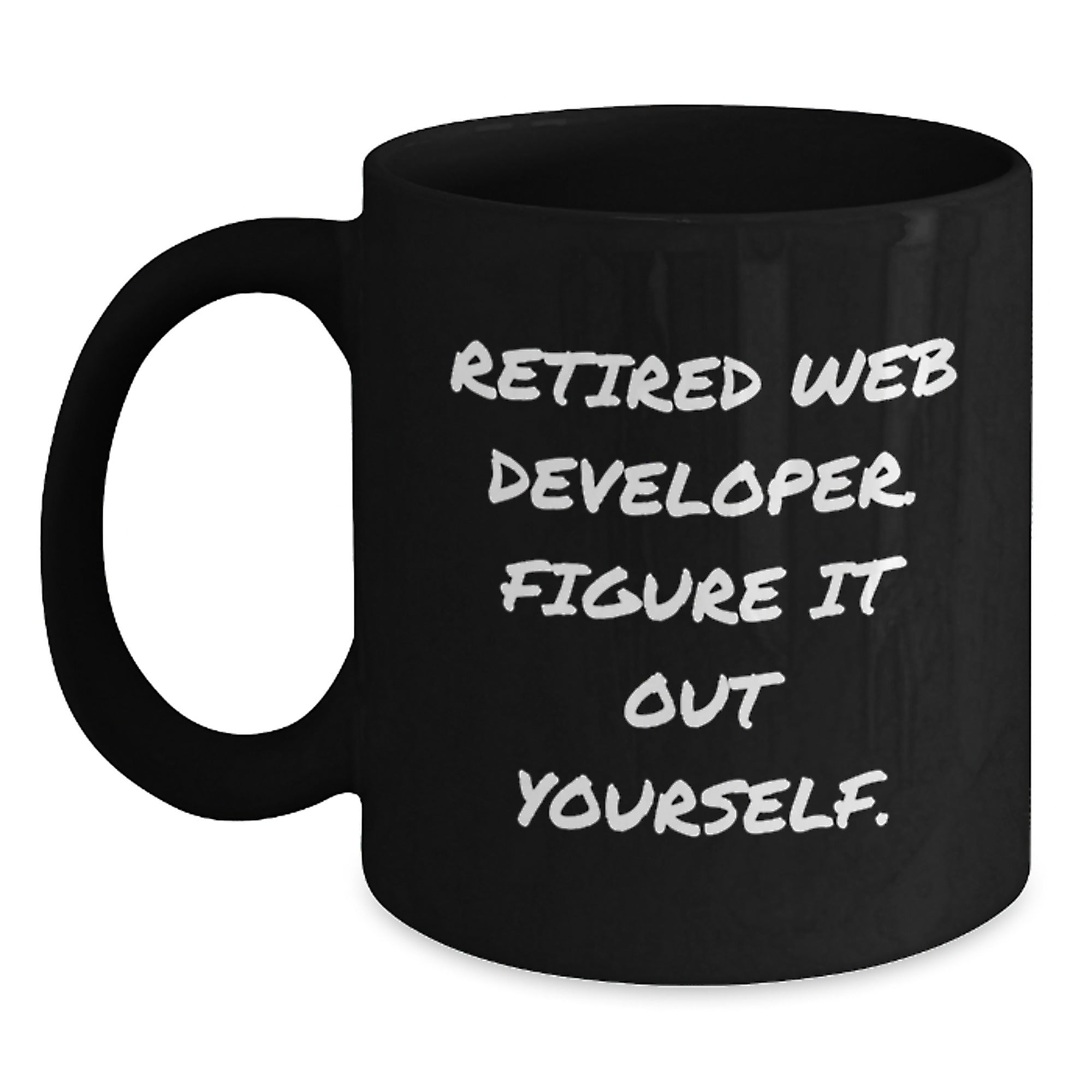 Web Developer Gifts from Friends - Funny Quote 'Retired Web Developer. Figure It Out Yourself.' on Black Coffee Mug for Graduation Select your color Black Select your size 11oz 15oz Decrease quantity for Web Developer Gifts from Friends - Funny Quote 'Retired Web Developer. Figure It Out Yourself.' on Black Coffee Mug for Graduation Quantity Increase quantity Show product Select color Removing from cart... Adding... Out of stock Unavailable Add to cart Removing from cart... Adding... Already in cart Select another option From $19.99 USD Unit price / per