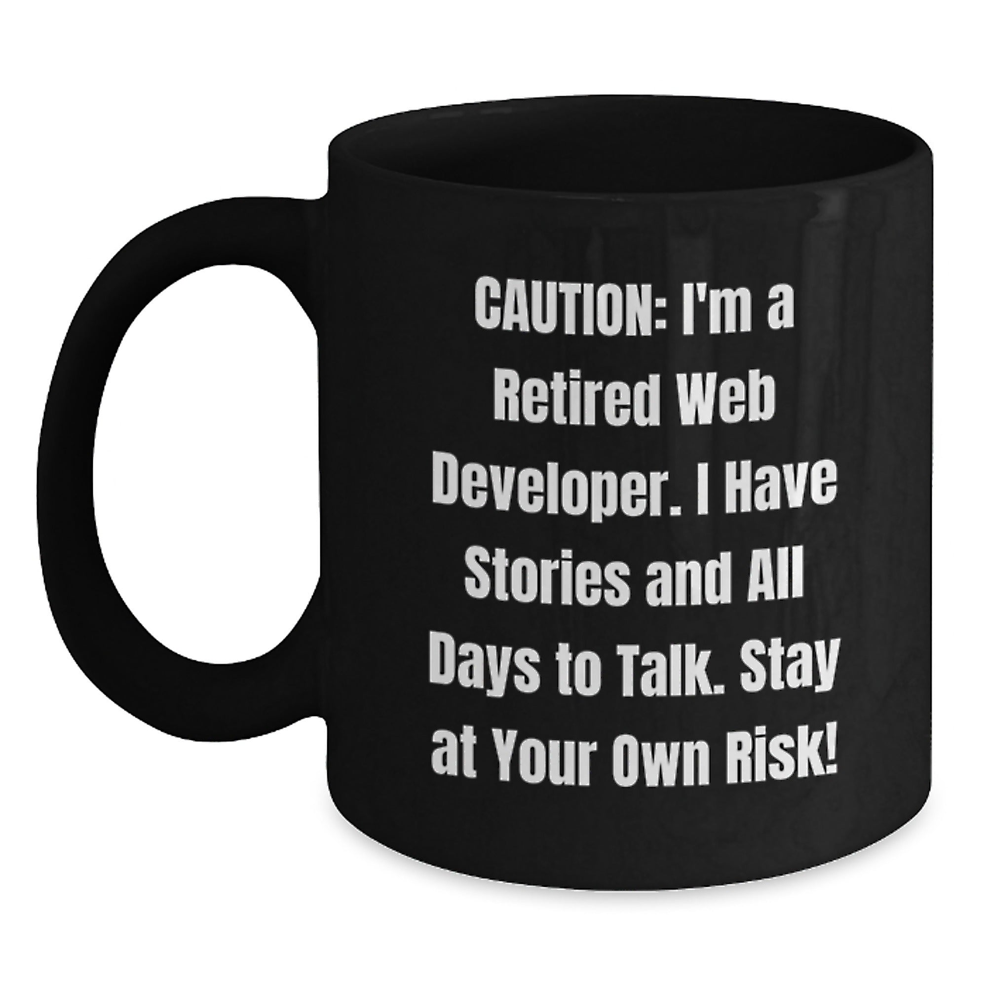 Funny Web Developer Gift, 'Caution: I'm A Retired Web Developer...' Black Coffee Mug for Birthday Select your color Black Select your size 11oz 15oz Decrease quantity for Funny Web Developer Gift, 'Caution: I'm A Retired Web Developer...' Black Coffee Mug for Birthday Quantity Increase quantity Show product Select color Removing from cart... Adding... Out of stock Unavailable Add to cart Removing from cart... Adding... Already in cart Select another option From $19.95 USD Unit price / per