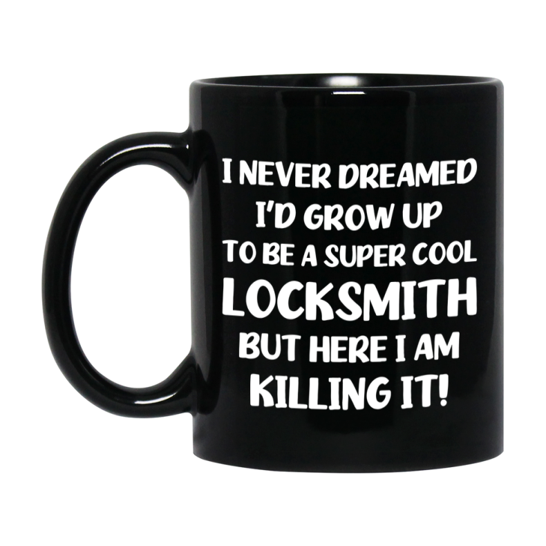 Funny Locksmith Black Mug - "I Never Dreamed I'd Grow Up To Be A Super Cool Locksmith" - 11Oz Or 15Oz Ceramic Coffee Cup Select your size 11oz 15oz Select your color Black Decrease quantity for Funny Locksmith Black Mug - "I Never Dreamed I'd Grow Up To Be A Super Cool Locksmith" - 11Oz Or 15Oz Ceramic Coffee Cup Quantity Increase quantity Show product Select size Removing from cart... Adding... Out of stock Unavailable Add to cart Removing from cart... Adding... Already in cart Select another option From $16.95 USD Unit price / per