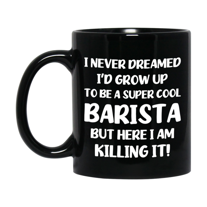 Funny Barista Black Mug - "I Never Dreamed I'd Grow Up To Be A Super Cool Barista" - 11Oz Or 15Oz Ceramic Coffee Cup Select your size 11oz 15oz Select your color Black Decrease quantity for Funny Barista Black Mug - "I Never Dreamed I'd Grow Up To Be A Super Cool Barista" - 11Oz Or 15Oz Ceramic Coffee Cup Quantity Increase quantity Show product Select size Removing from cart... Adding... Out of stock Unavailable Add to cart Removing from cart... Adding... Already in cart Select another option From $16.95 USD Unit price / per