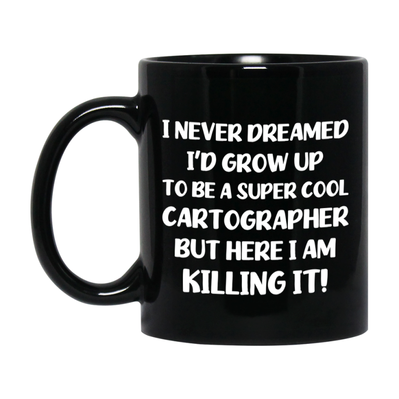 Funny Cartographer Black Mug - "I Never Dreamed I'd Grow Up To Be A Super Cool Cartographer" - 11Oz Or 15Oz Ceramic Coffee Cup Select your size 11oz 15oz Select your color Black Decrease quantity for Funny Cartographer Black Mug - "I Never Dreamed I'd Grow Up To Be A Super Cool Cartographer" - 11Oz Or 15Oz Ceramic Coffee Cup Quantity Increase quantity Show product Select size Removing from cart... Adding... Out of stock Unavailable Add to cart Removing from cart... Adding... Already in cart Select another option From $16.95 USD Unit price / per