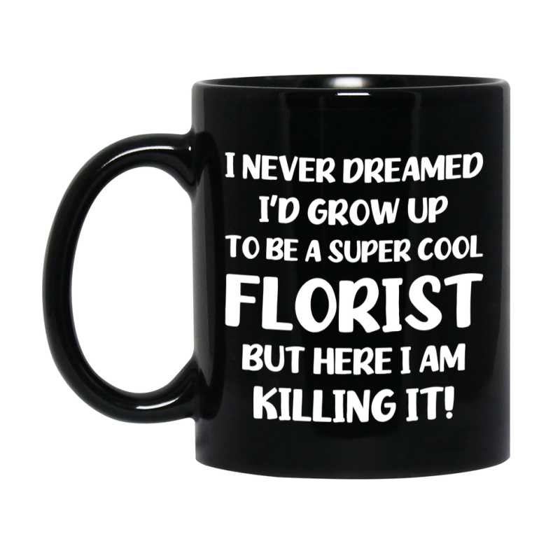 Funny Florist Black Mug - "I Never Dreamed I'd Grow Up To Be A Super Cool Florist" - 11Oz Or 15Oz Ceramic Coffee Cup Select your size 11oz 15oz Select your color Black Decrease quantity for Funny Florist Black Mug - "I Never Dreamed I'd Grow Up To Be A Super Cool Florist" - 11Oz Or 15Oz Ceramic Coffee Cup Quantity Increase quantity Show product Select size Removing from cart... Adding... Out of stock Unavailable Add to cart Removing from cart... Adding... Already in cart Select another option From $16.95 USD Unit price / per