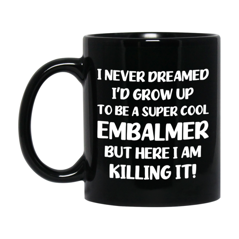 Funny Embalmer Black Mug - "I Never Dreamed I'd Grow Up To Be A Super Cool Embalmer" - 11Oz Or 15Oz Ceramic Coffee Cup Select your size 11oz 15oz Select your color Black Decrease quantity for Funny Embalmer Black Mug - "I Never Dreamed I'd Grow Up To Be A Super Cool Embalmer" - 11Oz Or 15Oz Ceramic Coffee Cup Quantity Increase quantity Show product Select size Removing from cart... Adding... Out of stock Unavailable Add to cart Removing from cart... Adding... Already in cart Select another option From $16.95 USD Unit price / per