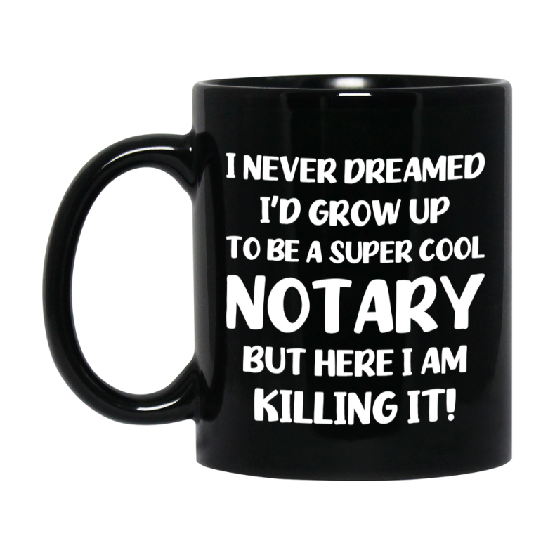 Funny Notary Black Mug - "I Never Dreamed I'd Grow Up To Be A Super Cool Notary" - 11Oz Or 15Oz Ceramic Coffee Cup Select your size 11oz 15oz Select your color Black Decrease quantity for Funny Notary Black Mug - "I Never Dreamed I'd Grow Up To Be A Super Cool Notary" - 11Oz Or 15Oz Ceramic Coffee Cup Quantity Increase quantity Show product Select size Removing from cart... Adding... Out of stock Unavailable Add to cart Removing from cart... Adding... Already in cart Select another option From $16.95 USD Unit price / per