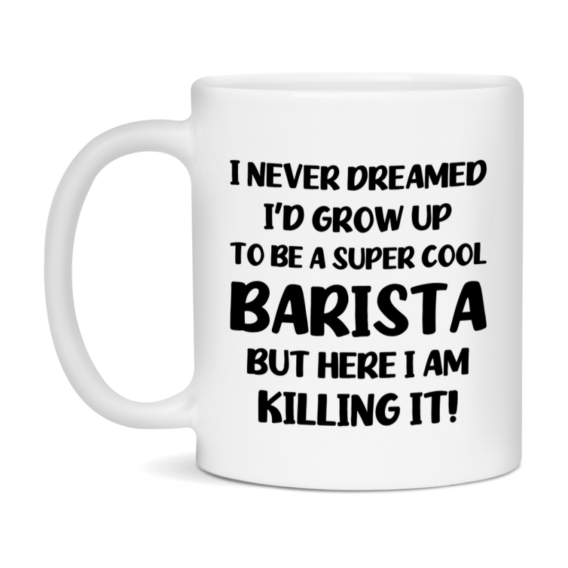 Funny Barista Mug - "I Never Dreamed I'd Grow Up To Be A Super Cool Barista" - 11Oz Or 15Oz Ceramic Coffee Cup Select your size 11oz 15oz Select your color White White/Red White/Pink White/Orange White/Light Green White/Light Blue White/Midnight Blue White/Black Decrease quantity for Funny Barista Mug - "I Never Dreamed I'd Grow Up To Be A Super Cool Barista" - 11Oz Or 15Oz Ceramic Coffee Cup Quantity Increase quantity Show product Select size Removing from cart... Adding... Out of stock Unavailable Add to cart Removing from cart... Adding... Already in cart Select another option From $16.95 USD Unit price / per
