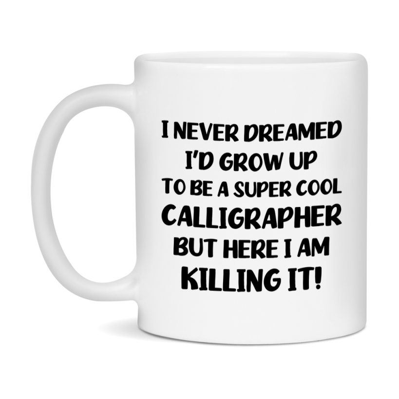 Funny Calligrapher Mug - "I Never Dreamed I'd Grow Up To Be A Super Cool Calligrapher" - 11Oz Or 15Oz Ceramic Coffee Cup Select your size 11oz 15oz Select your color White White/Red White/Pink White/Orange White/Light Green White/Light Blue White/Midnight Blue White/Black Decrease quantity for Funny Calligrapher Mug - "I Never Dreamed I'd Grow Up To Be A Super Cool Calligrapher" - 11Oz Or 15Oz Ceramic Coffee Cup Quantity Increase quantity Show product Select size Removing from cart... Adding... Out of stock Unavailable Add to cart Removing from cart... Adding... Already in cart Select another option From $16.95 USD Unit price / per