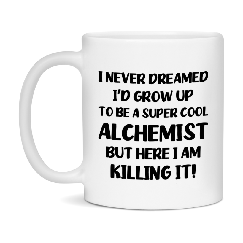 Funny Alchemist Mug - "I Never Dreamed I'd Grow Up To Be A Super Cool Alchemist" - 11Oz Or 15Oz Ceramic Coffee Cup Select your size 11oz 15oz Select your color White White/Red White/Pink White/Orange White/Light Green White/Light Blue White/Midnight Blue White/Black Decrease quantity for Funny Alchemist Mug - "I Never Dreamed I'd Grow Up To Be A Super Cool Alchemist" - 11Oz Or 15Oz Ceramic Coffee Cup Quantity Increase quantity Show product Select size Removing from cart... Adding... Out of stock Unavailable Add to cart Removing from cart... Adding... Already in cart Select another option From $16.95 USD Unit price / per