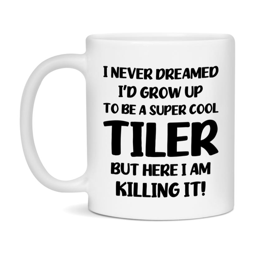 Funny Tiler Mug - "I Never Dreamed I'd Grow Up To Be A Super Cool Tiler" - 11Oz Or 15Oz Ceramic Coffee Cup Select your size 11oz 15oz Select your color White White/Red White/Pink White/Orange White/Light Green White/Light Blue White/Midnight Blue White/Black Decrease quantity for Funny Tiler Mug - "I Never Dreamed I'd Grow Up To Be A Super Cool Tiler" - 11Oz Or 15Oz Ceramic Coffee Cup Quantity Increase quantity Show product Select size Removing from cart... Adding... Out of stock Unavailable Add to cart Removing from cart... Adding... Already in cart Select another option From $16.95 USD Unit price / per