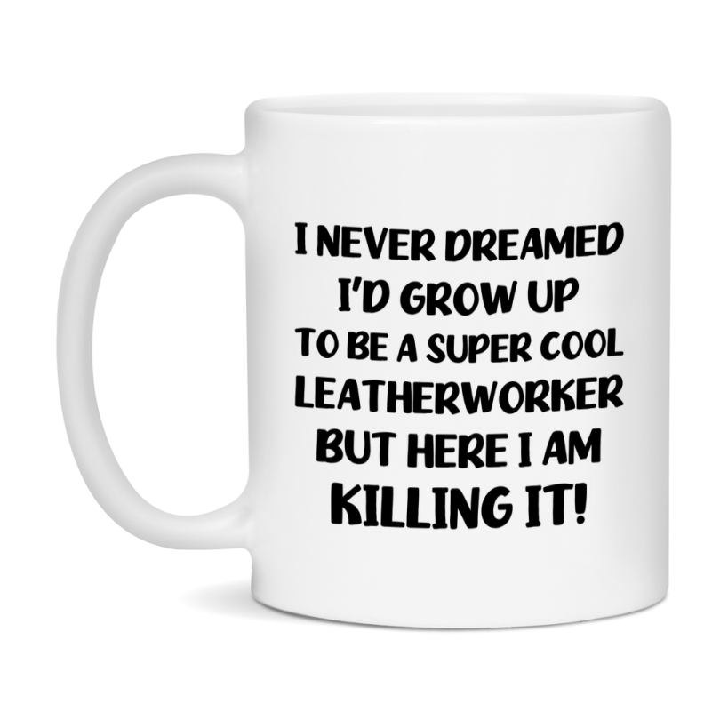 Funny Leatherworker Mug - "I Never Dreamed I'd Grow Up To Be A Super Cool Leatherworker" - 11Oz Or 15Oz Ceramic Coffee Cup Select your size 11oz 15oz Select your color White White/Red White/Pink White/Orange White/Light Green White/Light Blue White/Midnight Blue White/Black Decrease quantity for Funny Leatherworker Mug - "I Never Dreamed I'd Grow Up To Be A Super Cool Leatherworker" - 11Oz Or 15Oz Ceramic Coffee Cup Quantity Increase quantity Show product Select size Removing from cart... Adding... Out of stock Unavailable Add to cart Removing from cart... Adding... Already in cart Select another option From $16.95 USD Unit price / per