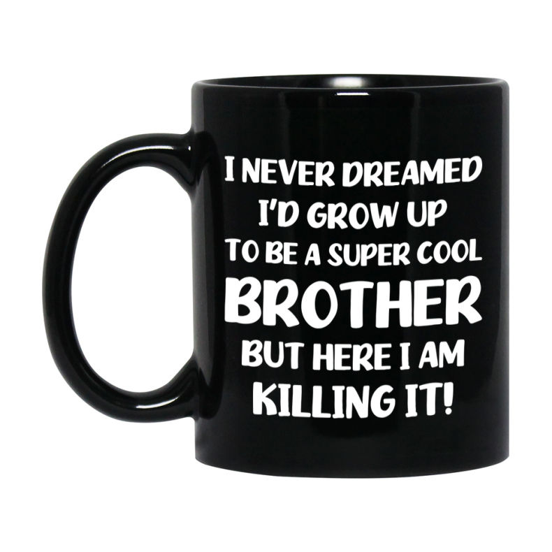 Funny Brother Black Mug - "I Never Dreamed I'd Grow Up To Be A Super Cool Brother" - 11Oz Or 15Oz Ceramic Coffee Cup Select your size 11oz 15oz Select your color Black Decrease quantity for Funny Brother Black Mug - "I Never Dreamed I'd Grow Up To Be A Super Cool Brother" - 11Oz Or 15Oz Ceramic Coffee Cup Quantity Increase quantity Show product Select size Removing from cart... Adding... Out of stock Unavailable Add to cart Removing from cart... Adding... Already in cart Select another option From $16.95 USD Unit price / per