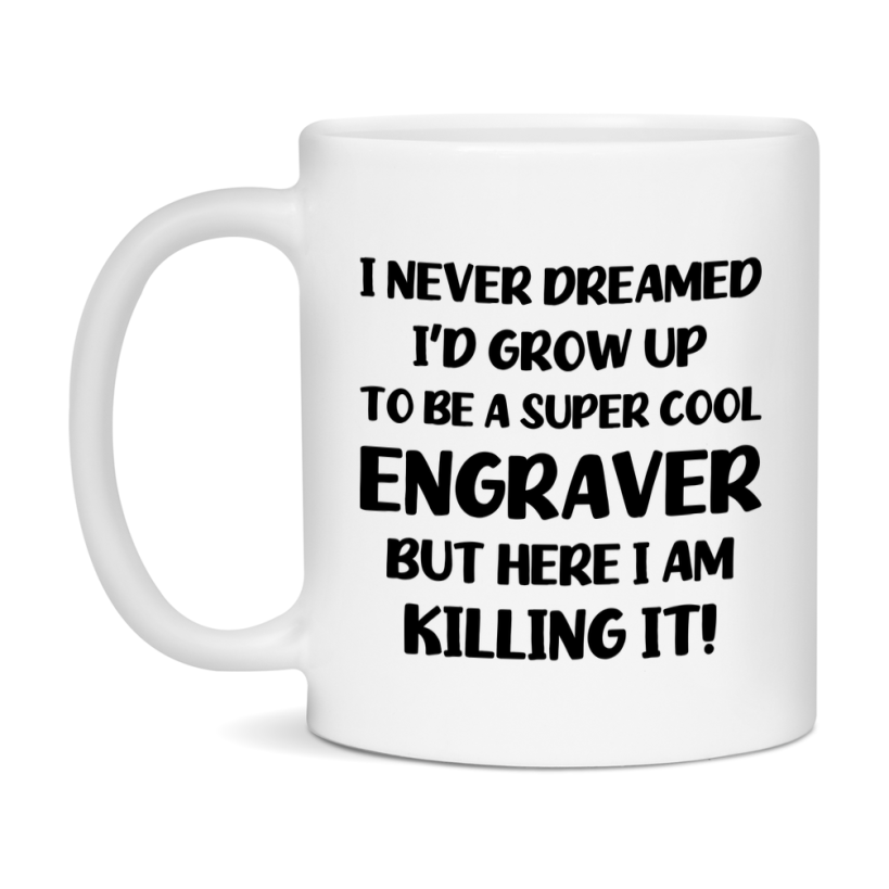 Funny Engraver Mug - "I Never Dreamed I'd Grow Up To Be A Super Cool Engraver" - 11Oz Or 15Oz Ceramic Coffee Cup Select your size 11oz 15oz Select your color White White/Red White/Pink White/Orange White/Light Green White/Light Blue White/Midnight Blue White/Black Decrease quantity for Funny Engraver Mug - "I Never Dreamed I'd Grow Up To Be A Super Cool Engraver" - 11Oz Or 15Oz Ceramic Coffee Cup Quantity Increase quantity Show product Select size Removing from cart... Adding... Out of stock Unavailable Add to cart Removing from cart... Adding... Already in cart Select another option From $16.95 USD Unit price / per