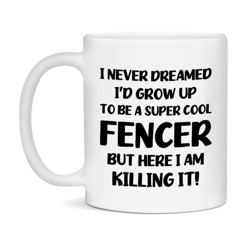 Funny Fencer Mug - "I Never Dreamed I'd Grow Up To Be A Super Cool Fencer" - 11Oz Or 15Oz Ceramic Coffee Cup Select your size 11oz 15oz Select your color White White/Red White/Pink White/Orange White/Light Green White/Light Blue White/Midnight Blue White/Black Decrease quantity for Funny Fencer Mug - "I Never Dreamed I'd Grow Up To Be A Super Cool Fencer" - 11Oz Or 15Oz Ceramic Coffee Cup Quantity Increase quantity Show product Select size Removing from cart... Adding... Out of stock Unavailable Add to cart Removing from cart... Adding... Already in cart Select another option From $16.95 USD Unit price / per