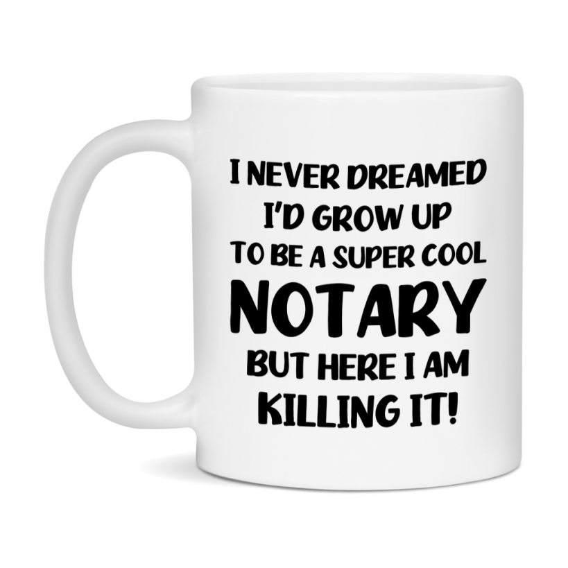 Funny Notary Mug - "I Never Dreamed I'd Grow Up To Be A Super Cool Notary" - 11Oz Or 15Oz Ceramic Coffee Cup Select your size 11oz 15oz Select your color White White/Red White/Pink White/Orange White/Light Green White/Light Blue White/Midnight Blue White/Black Decrease quantity for Funny Notary Mug - "I Never Dreamed I'd Grow Up To Be A Super Cool Notary" - 11Oz Or 15Oz Ceramic Coffee Cup Quantity Increase quantity Show product Select size Removing from cart... Adding... Out of stock Unavailable Add to cart Removing from cart... Adding... Already in cart Select another option From $16.95 USD Unit price / per