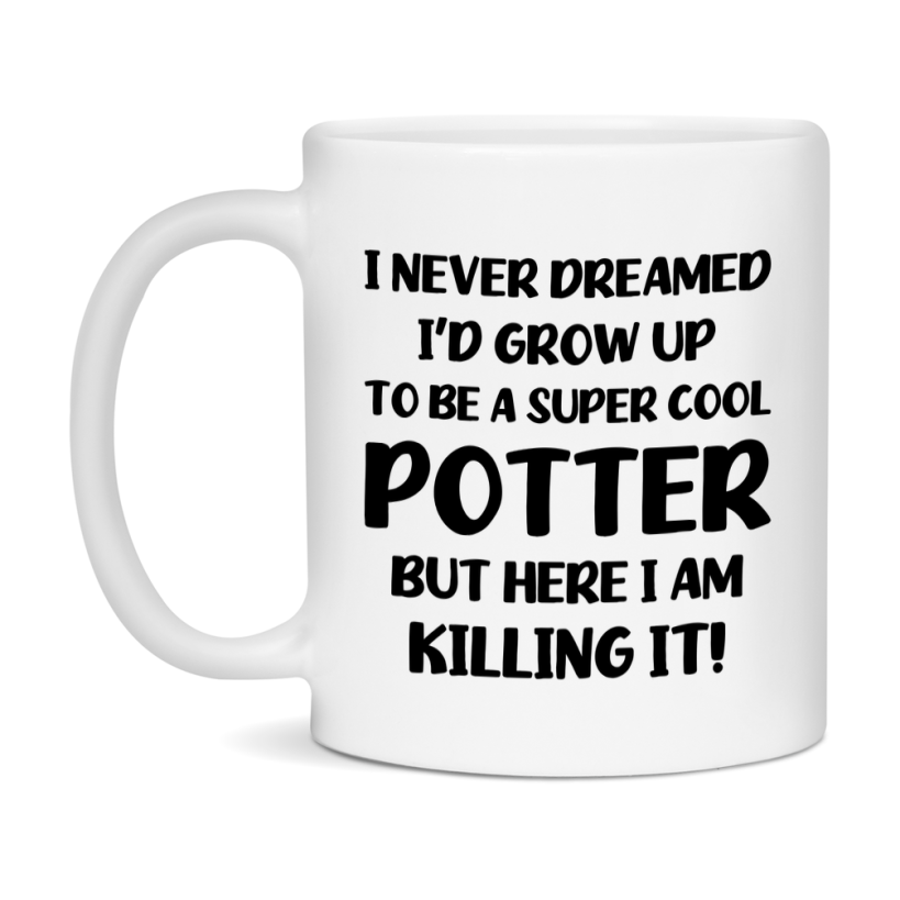 Funny Potter Mug - "I Never Dreamed I'd Grow Up To Be A Super Cool Potter" - 11Oz Or 15Oz Ceramic Coffee Cup Select your size 11oz 15oz Select your color White White/Red White/Pink White/Orange White/Light Green White/Light Blue White/Midnight Blue White/Black Decrease quantity for Funny Potter Mug - "I Never Dreamed I'd Grow Up To Be A Super Cool Potter" - 11Oz Or 15Oz Ceramic Coffee Cup Quantity Increase quantity Show product Select size Removing from cart... Adding... Out of stock Unavailable Add to cart Removing from cart... Adding... Already in cart Select another option From $16.95 USD Unit price / per