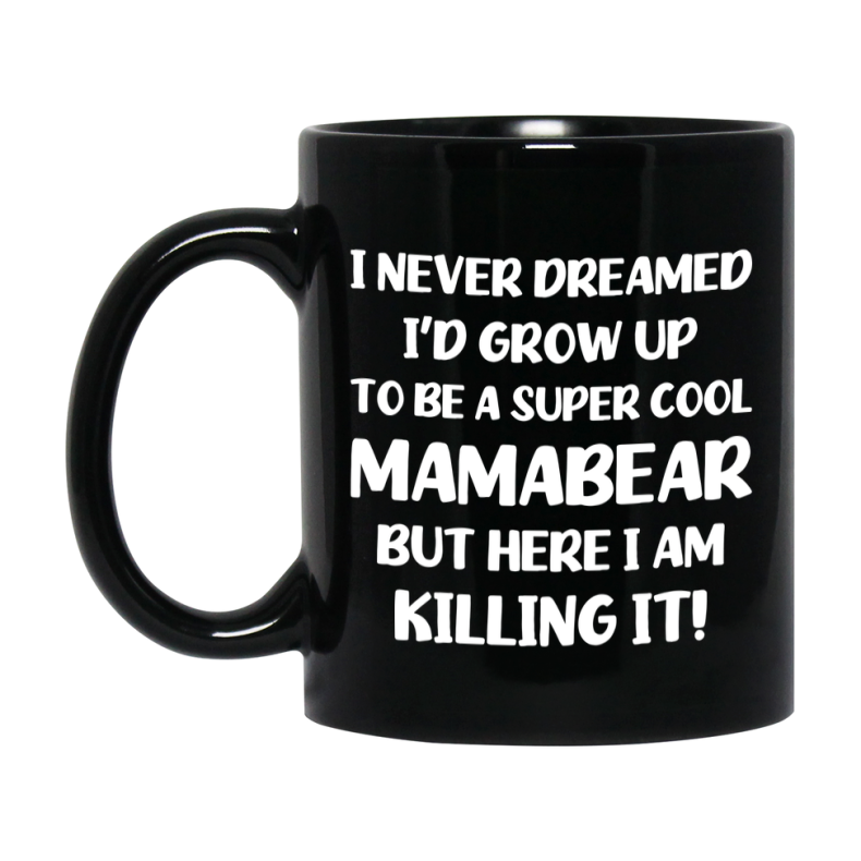 Funny Mamabear Black Mug - "I Never Dreamed I'd Grow Up To Be A Super Cool Mamabear" - 11Oz Or 15Oz Ceramic Coffee Cup Select your size 11oz 15oz Select your color Black Decrease quantity for Funny Mamabear Black Mug - "I Never Dreamed I'd Grow Up To Be A Super Cool Mamabear" - 11Oz Or 15Oz Ceramic Coffee Cup Quantity Increase quantity Show product Select size Removing from cart... Adding... Out of stock Unavailable Add to cart Removing from cart... Adding... Already in cart Select another option From $16.95 USD Unit price / per