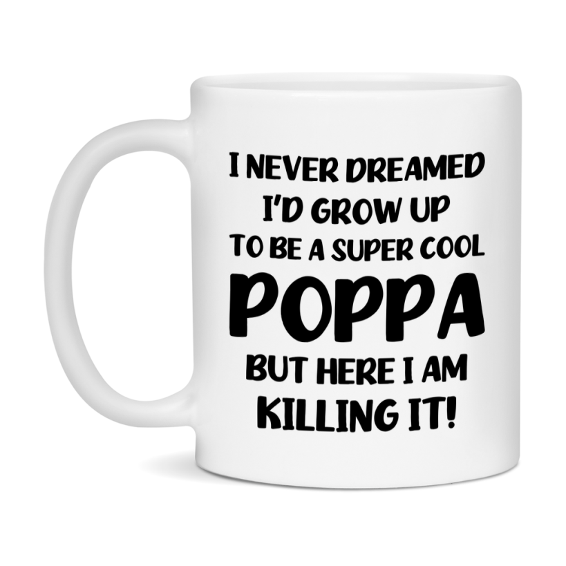 Funny Poppa Mug - "I Never Dreamed I'd Grow Up To Be A Super Cool Poppa" - White Ceramic Coffee Cup (11Oz Or 15Oz Select your size 11oz 15oz Select your color White White/Red White/Pink White/Orange White/Light Green White/Light Blue White/Midnight Blue White/Black Decrease quantity for Funny Poppa Mug - "I Never Dreamed I'd Grow Up To Be A Super Cool Poppa" - White Ceramic Coffee Cup (11Oz Or 15Oz Quantity Increase quantity Show product Select size Removing from cart... Adding... Out of stock Unavailable Add to cart Removing from cart... Adding... Already in cart Select another option From $16.95 USD Unit price / per