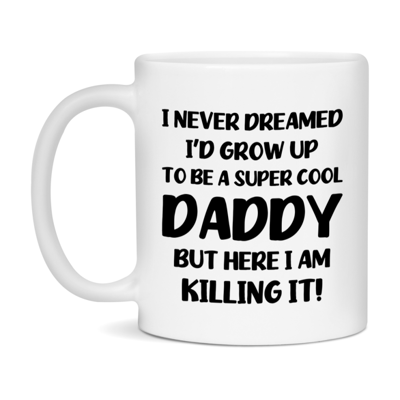 Funny Daddy Mug - "I Never Dreamed I'd Grow Up To Be A Super Cool Daddy" - White Ceramic Coffee Cup (11Oz Or 15Oz Select your size 11oz 15oz Select your color White White/Red White/Pink White/Orange White/Light Green White/Light Blue White/Midnight Blue White/Black Decrease quantity for Funny Daddy Mug - "I Never Dreamed I'd Grow Up To Be A Super Cool Daddy" - White Ceramic Coffee Cup (11Oz Or 15Oz Quantity Increase quantity Show product Select size Removing from cart... Adding... Out of stock Unavailable Add to cart Removing from cart... Adding... Already in cart Select another option From $16.95 USD Unit price / per