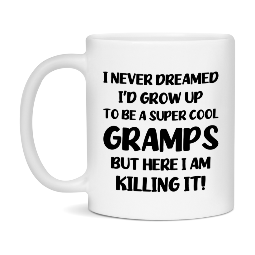 Funny Gramps Mug - "I Never Dreamed I'd Grow Up To Be A Super Cool Gramps" - White Ceramic Coffee Cup (11Oz Or 15Oz Select your size 11oz 15oz Select your color White White/Red White/Pink White/Orange White/Light Green White/Light Blue White/Midnight Blue White/Black Decrease quantity for Funny Gramps Mug - "I Never Dreamed I'd Grow Up To Be A Super Cool Gramps" - White Ceramic Coffee Cup (11Oz Or 15Oz Quantity Increase quantity Show product Select size Removing from cart... Adding... Out of stock Unavailable Add to cart Removing from cart... Adding... Already in cart Select another option From $16.95 USD Unit price / per