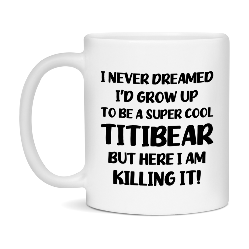 Funny Titibear Mug - "I Never Dreamed I'd Grow Up To Be A Super Cool Titibear" - White Ceramic Coffee Cup (11Oz Or 15Oz Select your size 11oz 15oz Select your color White White/Red White/Pink White/Orange White/Light Green White/Light Blue White/Midnight Blue White/Black Decrease quantity for Funny Titibear Mug - "I Never Dreamed I'd Grow Up To Be A Super Cool Titibear" - White Ceramic Coffee Cup (11Oz Or 15Oz Quantity Increase quantity Show product Select size Removing from cart... Adding... Out of stock Unavailable Add to cart Removing from cart... Adding... Already in cart Select another option From $16.95 USD Unit price / per