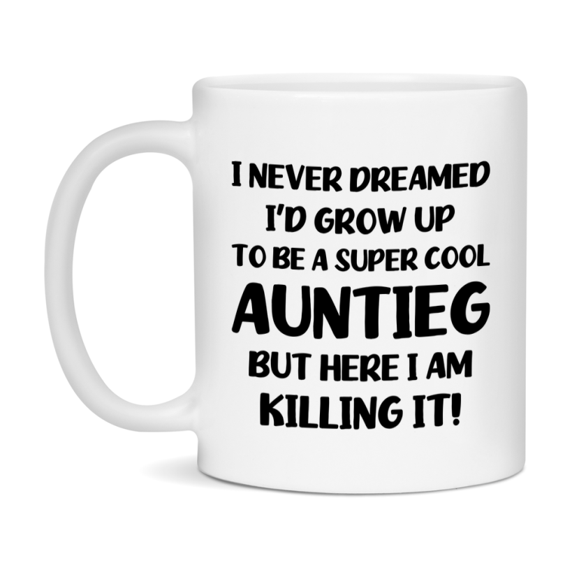 Funny Auntieg Mug - "I Never Dreamed I'd Grow Up To Be A Super Cool Auntieg" - White Ceramic Coffee Cup (11Oz Or 15Oz Select your size 11oz 15oz Select your color White White/Red White/Pink White/Orange White/Light Green White/Light Blue White/Midnight Blue White/Black Decrease quantity for Funny Auntieg Mug - "I Never Dreamed I'd Grow Up To Be A Super Cool Auntieg" - White Ceramic Coffee Cup (11Oz Or 15Oz Quantity Increase quantity Show product Select size Removing from cart... Adding... Out of stock Unavailable Add to cart Removing from cart... Adding... Already in cart Select another option From $16.95 USD Unit price / per