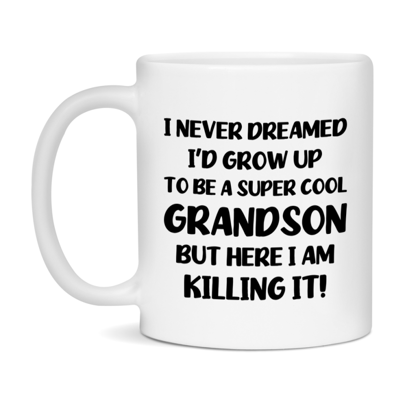 Funny Grandson Mug - "I Never Dreamed I'd Grow Up To Be A Super Cool Grandson" - White Ceramic Coffee Cup (11Oz Or 15Oz Select your size 11oz 15oz Select your color White White/Red White/Pink White/Orange White/Light Green White/Light Blue White/Midnight Blue White/Black Decrease quantity for Funny Grandson Mug - "I Never Dreamed I'd Grow Up To Be A Super Cool Grandson" - White Ceramic Coffee Cup (11Oz Or 15Oz Quantity Increase quantity Show product Select size Removing from cart... Adding... Out of stock Unavailable Add to cart Removing from cart... Adding... Already in cart Select another option From $16.95 USD Unit price / per
