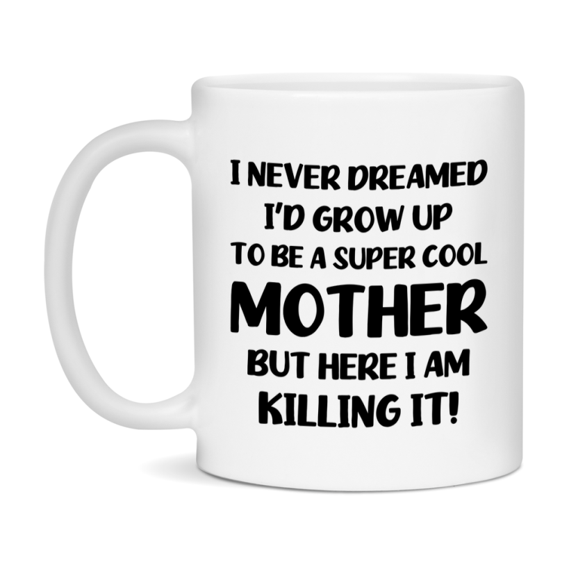 Funny Mother Mug - "I Never Dreamed I'd Grow Up To Be A Super Cool Mother" - White Ceramic Coffee Cup (11Oz Or 15Oz Select your size 11oz 15oz Select your color White White/Red White/Pink White/Orange White/Light Green White/Light Blue White/Midnight Blue White/Black Decrease quantity for Funny Mother Mug - "I Never Dreamed I'd Grow Up To Be A Super Cool Mother" - White Ceramic Coffee Cup (11Oz Or 15Oz Quantity Increase quantity Show product Select size Removing from cart... Adding... Out of stock Unavailable Add to cart Removing from cart... Adding... Already in cart Select another option From $16.95 USD Unit price / per