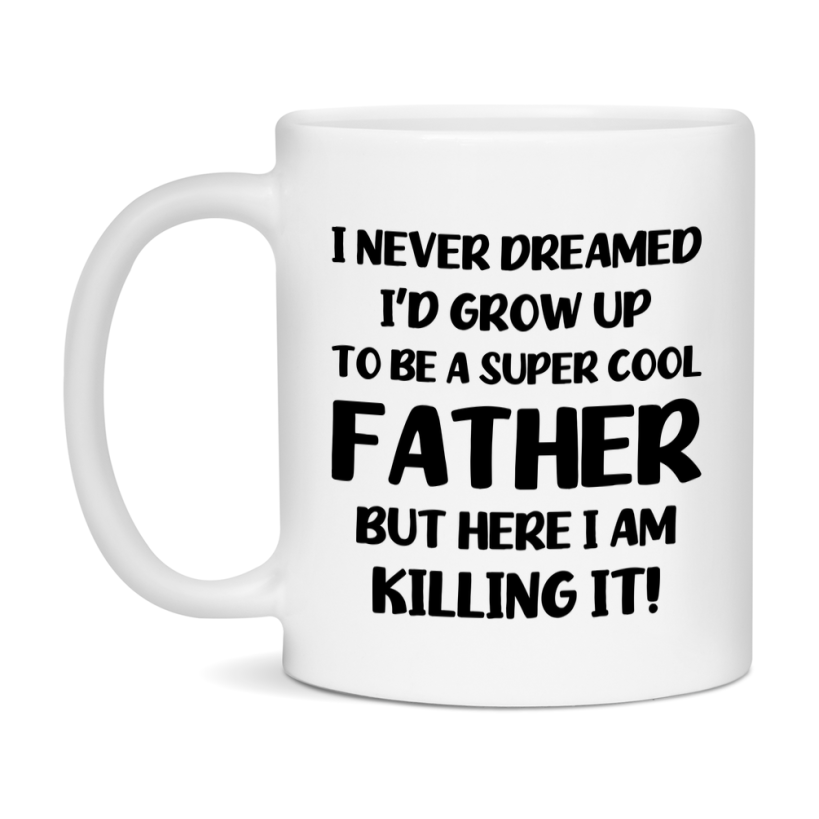 Funny Father Mug - "I Never Dreamed I'd Grow Up To Be A Super Cool Father" - White Ceramic Coffee Cup (11Oz Or 15Oz Select your size 11oz 15oz Select your color White White/Red White/Pink White/Orange White/Light Green White/Light Blue White/Midnight Blue White/Black Decrease quantity for Funny Father Mug - "I Never Dreamed I'd Grow Up To Be A Super Cool Father" - White Ceramic Coffee Cup (11Oz Or 15Oz Quantity Increase quantity Show product Select size Removing from cart... Adding... Out of stock Unavailable Add to cart Removing from cart... Adding... Already in cart Select another option From $16.95 USD Unit price / per
