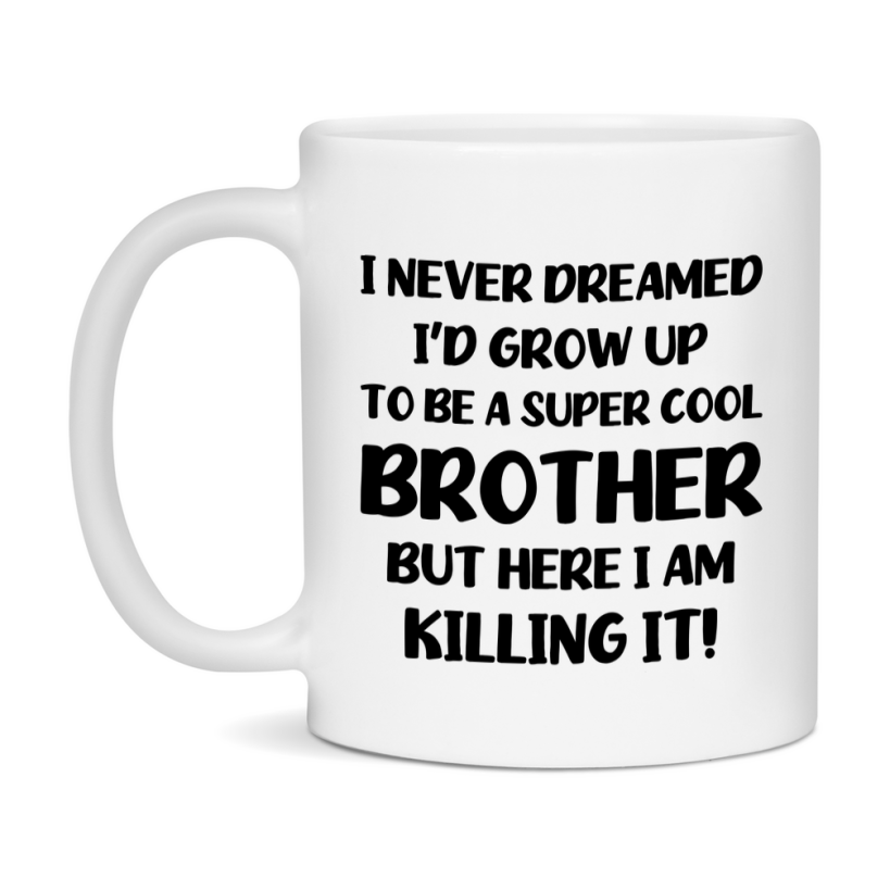 Funny Brother Mug - "I Never Dreamed I'd Grow Up To Be A Super Cool Brother" - White Ceramic Coffee Cup (11Oz Or 15Oz Select your size 11oz 15oz Select your color White White/Red White/Pink White/Orange White/Light Green White/Light Blue White/Midnight Blue White/Black Decrease quantity for Funny Brother Mug - "I Never Dreamed I'd Grow Up To Be A Super Cool Brother" - White Ceramic Coffee Cup (11Oz Or 15Oz Quantity Increase quantity Show product Select size Removing from cart... Adding... Out of stock Unavailable Add to cart Removing from cart... Adding... Already in cart Select another option From $16.95 USD Unit price / per