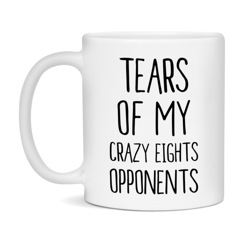 -12% OFF Funny Crazy Eights Mug – “Tears Of My Crazy Eights Opponents” – 11Oz Or 15Oz Coffee Cup Select your size 11oz 15oz Select your color White White/Red White/Pink White/Orange White/Light Green White/Light Blue White/Midnight Blue White/Black Decrease quantity for Funny Crazy Eights Mug – “Tears Of My Crazy Eights Opponents” – 11Oz Or 15Oz Coffee Cup Quantity Increase quantity Show product Select size Removing from cart... Adding... Out of stock Unavailable Add to cart Removing from cart... Adding... Already in cart Select another option Sale price $15.00 USD $16.95 USD Unit price / per