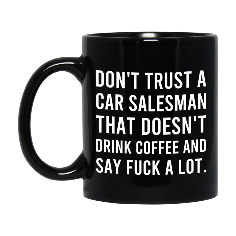 -17% OFF Funny Coffee Mug – Don't Trust A Car Salesman That Doesn't Drink Coffee, 11oz or 15oz Black Ceramic Mug, Novelty Gift for Car Salesman Select your size 11oz 15oz Select your color Black Decrease quantity for Funny Coffee Mug – Don't Trust A Car Salesman That Doesn't Drink Coffee, 11oz or 15oz Black Ceramic Mug, Novelty Gift for Car Salesman Quantity Increase quantity Show product Select size Removing from cart... Adding... Out of stock Unavailable Add to cart Removing from cart... Adding... Already in cart Select another option Sale price $14.00 USD $16.95 USD Unit price / per