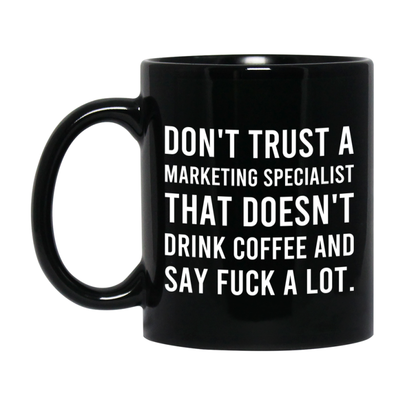 -17% OFF Funny Coffee Mug – Don't Trust A Marketing Specialist That Doesn't Drink Coffee, 11oz or 15oz Black Ceramic Mug, Novelty Gift for Marketing Specialist Select your size 11oz 15oz Select your color Black Decrease quantity for Funny Coffee Mug – Don't Trust A Marketing Specialist That Doesn't Drink Coffee, 11oz or 15oz Black Ceramic Mug, Novelty Gift for Marketing Specialist Quantity Increase quantity Show product Select size Removing from cart... Adding... Out of stock Unavailable Add to cart Removing from cart... Adding... Already in cart Select another option Sale price $14.00 USD $16.95 USD Unit price / per