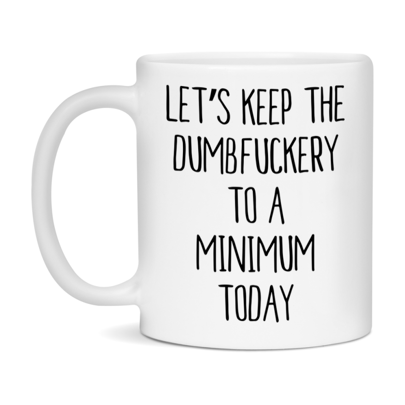 Sarcastic Mug Gift - Let's Keep The Dumbfuckery To A Minimum Today, 11Oz Or 15Oz Coffee Cup Select your size 11oz 15oz Select your color Black Decrease quantity for Sarcastic Mug Gift - Let's Keep The Dumbfuckery To A Minimum Today, 11Oz Or 15Oz Coffee Cup Quantity Increase quantity Show product Select size Removing from cart... Adding... Out of stock Unavailable Add to cart Removing from cart... Adding... Already in cart Select another option From $30.00 USD Unit price / per