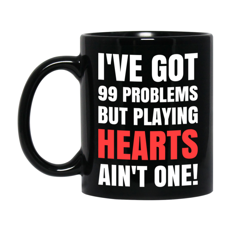 -12% OFF Funny Card Game Mug – Black Ceramic "99 Problems But Playing Hearts Ain’t One Select your size 11oz 15oz Select your color Black Decrease quantity for Funny Card Game Mug – Black Ceramic "99 Problems But Playing Hearts Ain’t One Quantity Increase quantity Show product Select size Removing from cart... Adding... Out of stock Unavailable Add to cart Removing from cart... Adding... Already in cart Select another option Sale price $15.00 USD $16.95 USD Unit price / per