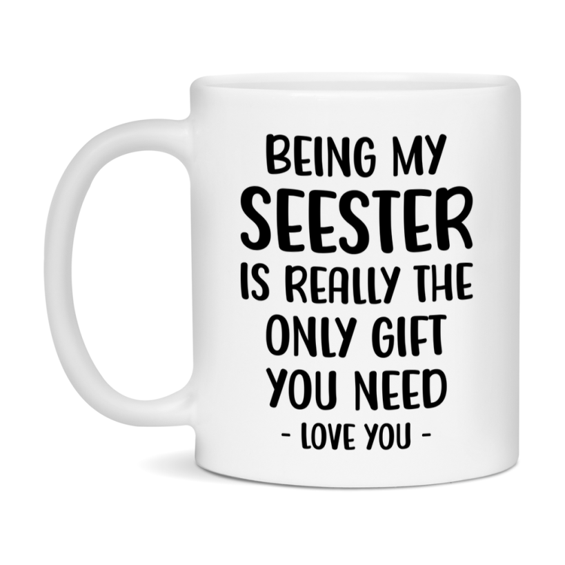 -7% OFF Funny Mug For Seester, Being My Seester Is The Only Gift You Need, 11Oz Or 15Oz Coffee Mug Select your size 11oz 15oz Select your color White White/Red White/Pink White/Orange White/Light Green White/Light Blue White/Midnight Blue White/Black Decrease quantity for Funny Mug For Seester, Being My Seester Is The Only Gift You Need, 11Oz Or 15Oz Coffee Mug Quantity Increase quantity Show product Select size Removing from cart... Adding... Out of stock Unavailable Add to cart Removing from cart... Adding... Already in cart Select another option Sale price $12.00 USD $12.95 USD Unit price / per