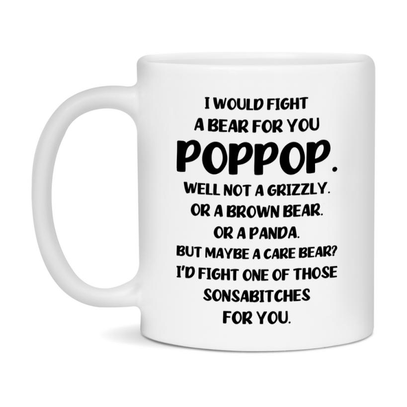 -7% OFF Funny Mug For Poppop, I Would Fight A Bear For You Poppop, Double-Sided 11Oz Or 15Oz Ceramic Coffee Cup Select your size 11oz 15oz Select your color White White/Red White/Pink White/Orange White/Light Green White/Light Blue White/Midnight Blue White/Black Decrease quantity for Funny Mug For Poppop, I Would Fight A Bear For You Poppop, Double-Sided 11Oz Or 15Oz Ceramic Coffee Cup Quantity Increase quantity Show product Select size Removing from cart... Adding... Out of stock Unavailable Add to cart Removing from cart... Adding... Already in cart Select another option Sale price $12.00 USD $12.95 USD Unit price / per