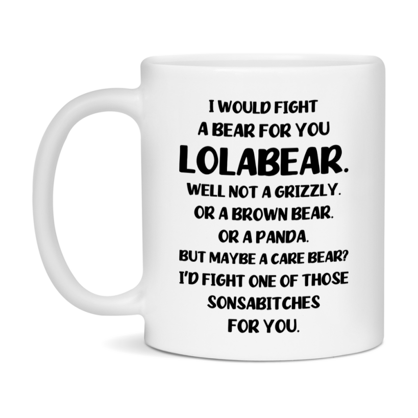 -7% OFF Funny Mug For Lolabear, I Would Fight A Bear For You Lolabear, Double-Sided 11Oz Or 15Oz Ceramic Coffee Cup Select your size 11oz 15oz Select your color White White/Red White/Pink White/Orange White/Light Green White/Light Blue White/Midnight Blue White/Black Decrease quantity for Funny Mug For Lolabear, I Would Fight A Bear For You Lolabear, Double-Sided 11Oz Or 15Oz Ceramic Coffee Cup Quantity Increase quantity Show product Select size Removing from cart... Adding... Out of stock Unavailable Add to cart Removing from cart... Adding... Already in cart Select another option Sale price $12.00 USD $12.95 USD Unit price / per