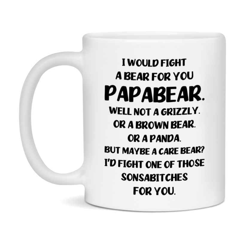 -7% OFF Funny Mug For Papabear, I Would Fight A Bear For You Papabear, Double-Sided 11Oz Or 15Oz Ceramic Coffee Cup Select your size 11oz 15oz Select your color White White/Red White/Pink White/Orange White/Light Green White/Light Blue White/Midnight Blue White/Black Decrease quantity for Funny Mug For Papabear, I Would Fight A Bear For You Papabear, Double-Sided 11Oz Or 15Oz Ceramic Coffee Cup Quantity Increase quantity Show product Select size Removing from cart... Adding... Out of stock Unavailable Add to cart Removing from cart... Adding... Already in cart Select another option Sale price $12.00 USD $12.95 USD Unit price / per
