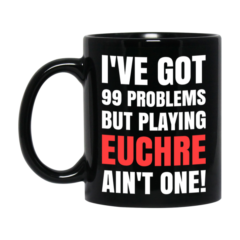 -12% OFF Funny Card Game Mug – Black Ceramic "99 Problems But Playing Euchre Ain’t One Select your size 11oz 15oz Select your color Black Decrease quantity for Funny Card Game Mug – Black Ceramic "99 Problems But Playing Euchre Ain’t One Quantity Increase quantity Show product Select size Removing from cart... Adding... Out of stock Unavailable Add to cart Removing from cart... Adding... Already in cart Select another option Sale price $15.00 USD $16.95 USD Unit price / per