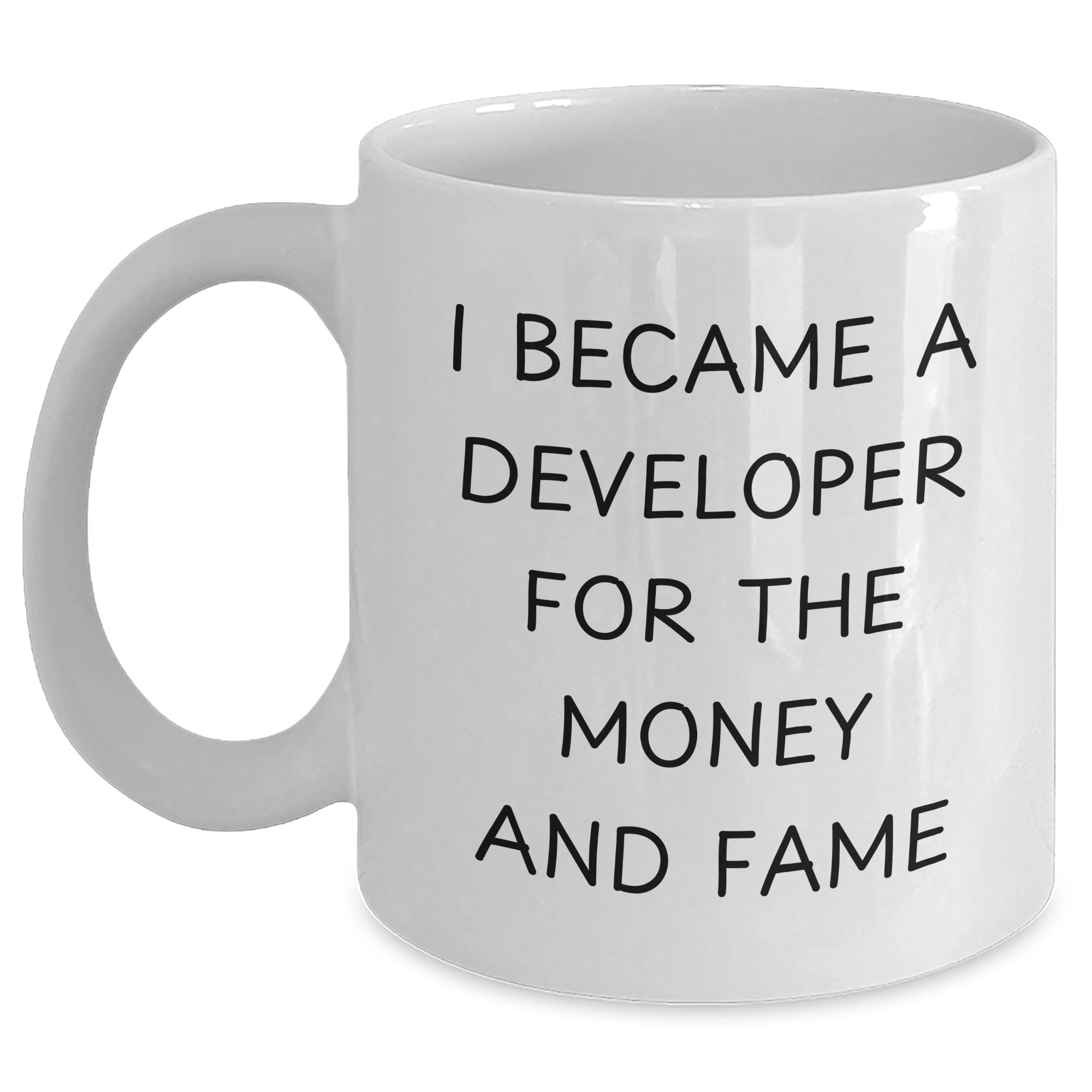 Funny Developer Gifts for Him or Her - I Became A Developer For The Money And Fame Quote, Black Coffee Mug for Graduation, Gifts from Friends or Family Select your color Black Select your size 11oz 15oz Decrease quantity for Funny Developer Gifts for Him or Her - I Became A Developer For The Money And Fame Quote, Black Coffee Mug for Graduation, Gifts from Friends or Family Quantity Increase quantity Show product Select color Removing from cart... Adding... Out of stock Unavailable Add to cart Removing from cart... Adding... Already in cart Select another option From $19.99 USD Unit price / per