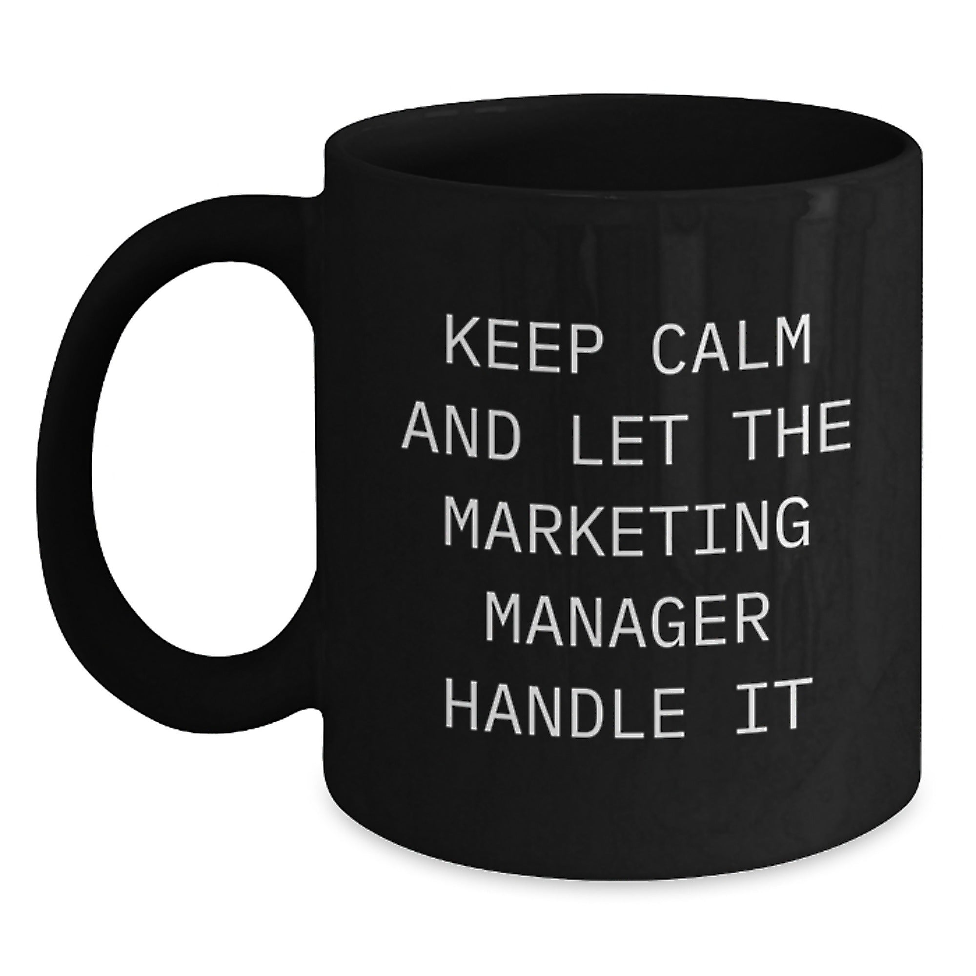Funny Marketing Manager Gifts for Men, Black Coffee Mug, 'Keep Calm And Let The Marketing Manager Handle It', Christmas Unique Gifts from Friends, Coworkers Select your color Black Select your size 11oz 15oz Decrease quantity for Funny Marketing Manager Gifts for Men, Black Coffee Mug, 'Keep Calm And Let The Marketing Manager Handle It', Christmas Unique Gifts from Friends, Coworkers Quantity Increase quantity Show product Select color Removing from cart... Adding... Out of stock Unavailable Add to cart Removing from cart... Adding... Already in cart Select another option From $19.95 USD Unit price / per