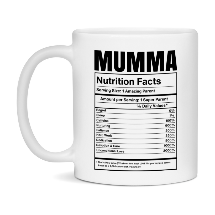 Mumma Coffee Mug, Nutrition Facts Mug For Mumma, Funny Gift For Mumma, 11Oz Or 15Oz Cup Select your size 11oz 15oz Select your color White White/Red White/Pink White/Orange White/Light Green White/Light Blue White/Midnight Blue White/Black Decrease quantity for Mumma Coffee Mug, Nutrition Facts Mug For Mumma, Funny Gift For Mumma, 11Oz Or 15Oz Cup Quantity Increase quantity Show product Select size Removing from cart... Adding... Out of stock Unavailable Add to cart Removing from cart... Adding... Already in cart Select another option From $14.95 USD Unit price / per