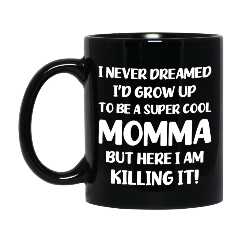 Funny Momma Black Mug - "I Never Dreamed I'd Grow Up To Be A Super Cool Momma" - 11Oz Or 15Oz Ceramic Coffee Cup Select your size 11oz 15oz Select your color Black Decrease quantity for Funny Momma Black Mug - "I Never Dreamed I'd Grow Up To Be A Super Cool Momma" - 11Oz Or 15Oz Ceramic Coffee Cup Quantity Increase quantity Show product Select size Removing from cart... Adding... Out of stock Unavailable Add to cart Removing from cart... Adding... Already in cart Select another option From $16.95 USD Unit price / per