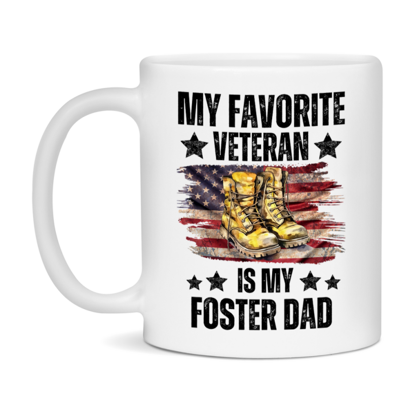Veteran Gift Mug, My Favorite Veteran Is My Foster Dad, 11oz or 15oz Ceramic Coffee Cup Gift for Foster Dad Select your size 11oz 15oz Select your color White White/Red White/Pink White/Orange White/Light Green White/Light Blue White/Midnight Blue White/Black Decrease quantity for Veteran Gift Mug, My Favorite Veteran Is My Foster Dad, 11oz or 15oz Ceramic Coffee Cup Gift for Foster Dad Quantity Increase quantity Show product Select size Removing from cart... Adding... Out of stock Unavailable Add to cart Removing from cart... Adding... Already in cart Select another option Regular price $15.00 USD Unit price / per