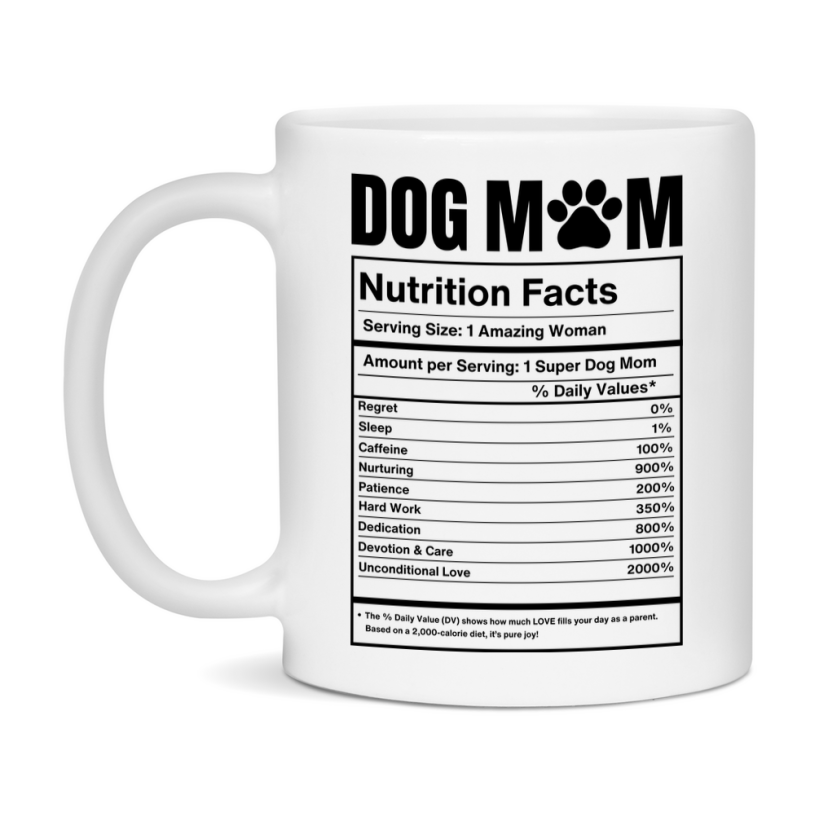 Dog Mom Nutrition Facts Mug, 11Oz Or 15Oz Double-Sided Coffee Cup Select your size 11oz 15oz Select your color White White/Red White/Pink White/Orange White/Light Green White/Light Blue White/Midnight Blue White/Black Decrease quantity for Dog Mom Nutrition Facts Mug, 11Oz Or 15Oz Double-Sided Coffee Cup Quantity Increase quantity Show product Select size Removing from cart... Adding... Out of stock Unavailable Add to cart Removing from cart... Adding... Already in cart Select another option From $14.95 USD Unit price / per