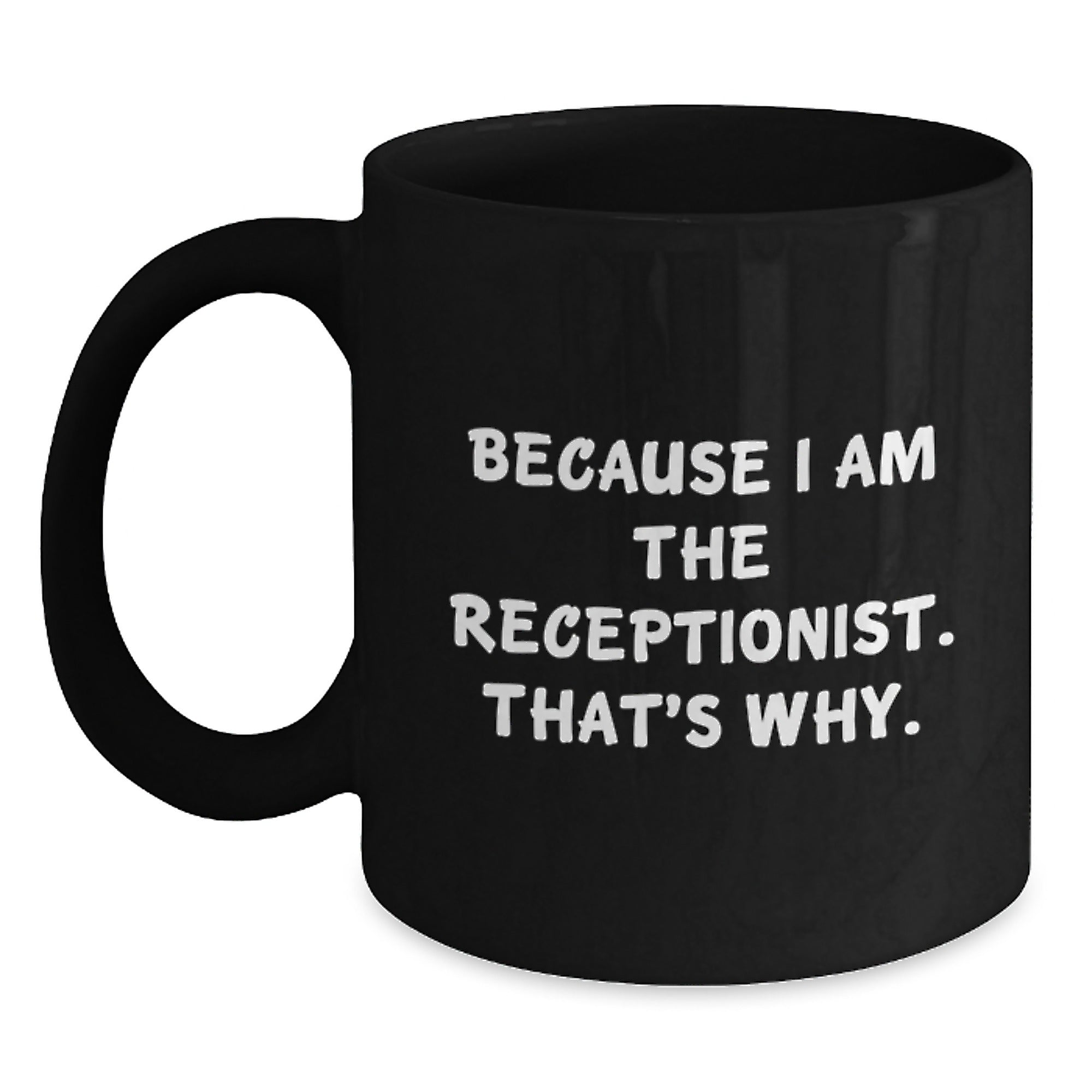 Funny Receptionist Gifts for Coworkers Black Coffee Mug Because I Am The Receptionist That's Why Christmas Unique Presents from Friends Select your color Black Select your size 11oz 15oz Decrease quantity for Funny Receptionist Gifts for Coworkers Black Coffee Mug Because I Am The Receptionist That's Why Christmas Unique Presents from Friends Quantity Increase quantity Show product Select color Removing from cart... Adding... Out of stock Unavailable Add to cart Removing from cart... Adding... Already in cart Select another option From $19.95 USD Unit price / per