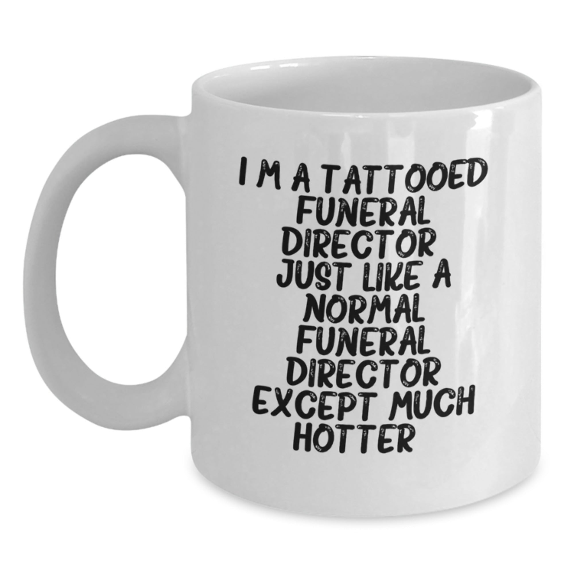 Gifts from Friends and Family for Funeral Director Christmas Unique Mugs - I'm A Tattooed Funeral Director Except Much Hotter.+, Funny White Coffee Mug Select your color White Select your size 11oz 15oz Decrease quantity for Gifts from Friends and Family for Funeral Director Christmas Unique Mugs - I'm A Tattooed Funeral Director Except Much Hotter.+, Funny White Coffee Mug Quantity Increase quantity Show product Select color Removing from cart... Adding... Out of stock Unavailable Add to cart Removing from cart... Adding... Already in cart Select another option From $14.95 USD Unit price / per