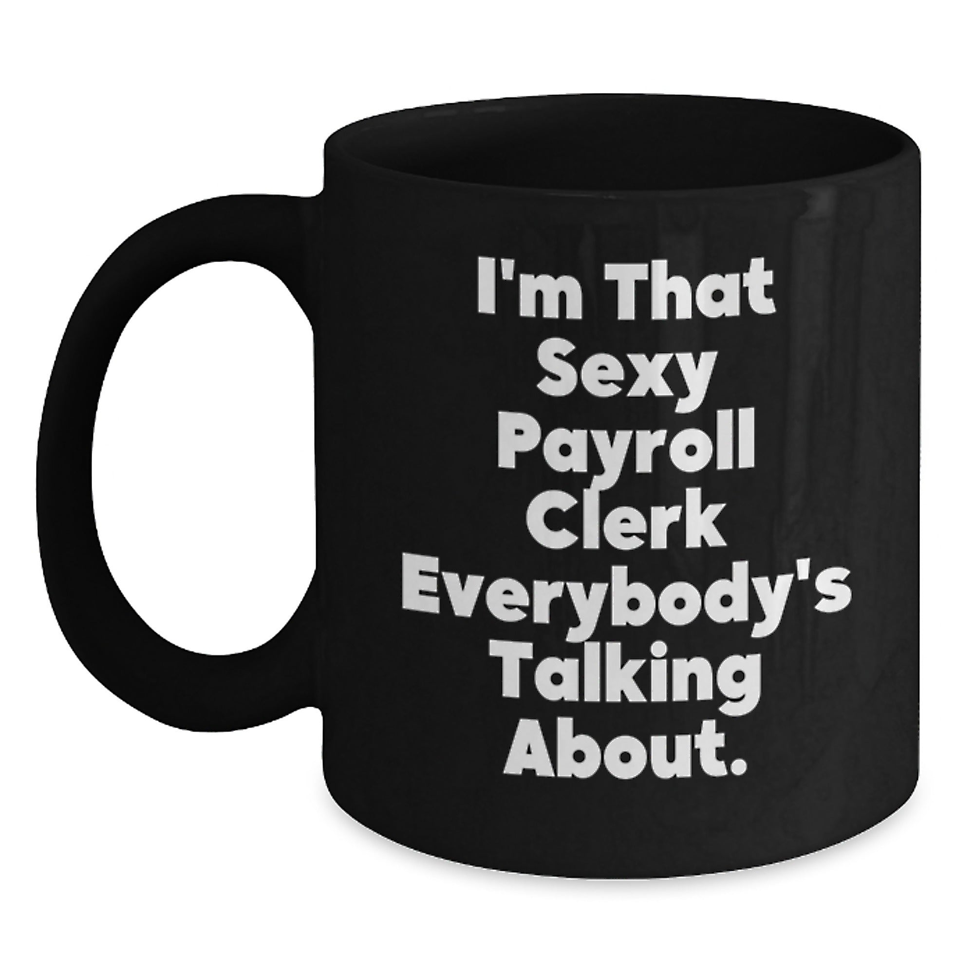 Funny Payroll Clerk Gifts for Men Women Friends Coworkers, Christmas Unique Presents from Family, 'I'm That Sexy Payroll Clerk Everybody's Talking About.' Black Coffee Mug Select your color Black Select your size 11oz 15oz Decrease quantity for Funny Payroll Clerk Gifts for Men Women Friends Coworkers, Christmas Unique Presents from Family, 'I'm That Sexy Payroll Clerk Everybody's Talking About.' Black Coffee Mug Quantity Increase quantity Show product Select color Removing from cart... Adding... Out of stock Unavailable Add to cart Removing from cart... Adding... Already in cart Select another option From $19.95 USD Unit price / per