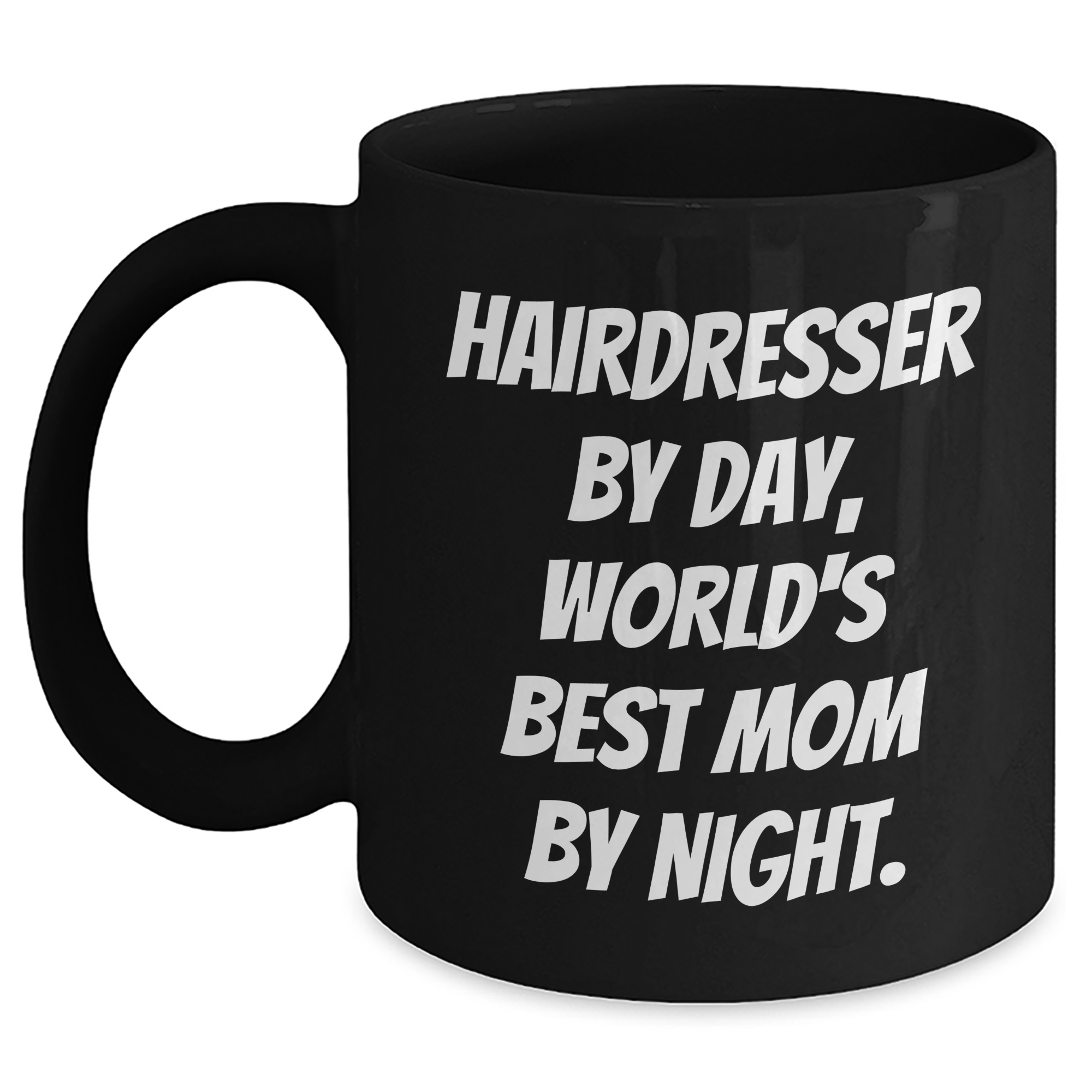 Hairdresser Gifts from Mom, Funny Quote, Black Coffee Mug for Father's Day, 'Hairdresser By Day, World's Best Mom By Night.' Select your color Black Select your size 11oz 15oz Decrease quantity for Hairdresser Gifts from Mom, Funny Quote, Black Coffee Mug for Father's Day, 'Hairdresser By Day, World's Best Mom By Night.' Quantity Increase quantity Show product Select color Removing from cart... Adding... Out of stock Unavailable Add to cart Removing from cart... Adding... Already in cart Select another option From $19.99 USD Unit price / per