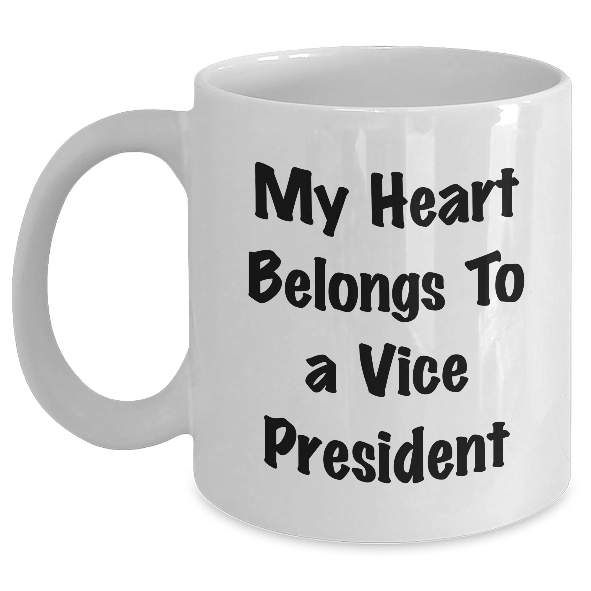 Funny Vice President White Coffee Mug Gifts from Friends, Gifts for Vice President, My Heart Belongs To A Vice President, Graduation Unique Gifts Select your color White Select your size 11oz 15oz Decrease quantity for Funny Vice President White Coffee Mug Gifts from Friends, Gifts for Vice President, My Heart Belongs To A Vice President, Graduation Unique Gifts Quantity Increase quantity Show product Select color Removing from cart... Adding... Out of stock Unavailable Add to cart Removing from cart... Adding... Already in cart Select another option From $16.99 USD Unit price / per