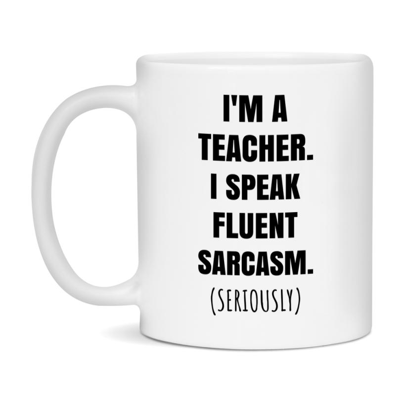 Funny Teacher Coffee Mug - "I'm A Teacher, I Speak Fluent Sarcasm" - Available In 11Oz Or 15Oz Select your size 11oz 15oz Select your color White White/Red White/Pink White/Orange White/Light Green White/Light Blue White/Midnight Blue White/Black Decrease quantity for Funny Teacher Coffee Mug - "I'm A Teacher, I Speak Fluent Sarcasm" - Available In 11Oz Or 15Oz Quantity Increase quantity Show product Select size Removing from cart... Adding... Out of stock Unavailable Add to cart Removing from cart... Adding... Already in cart Select another option From $16.95 USD Unit price / per